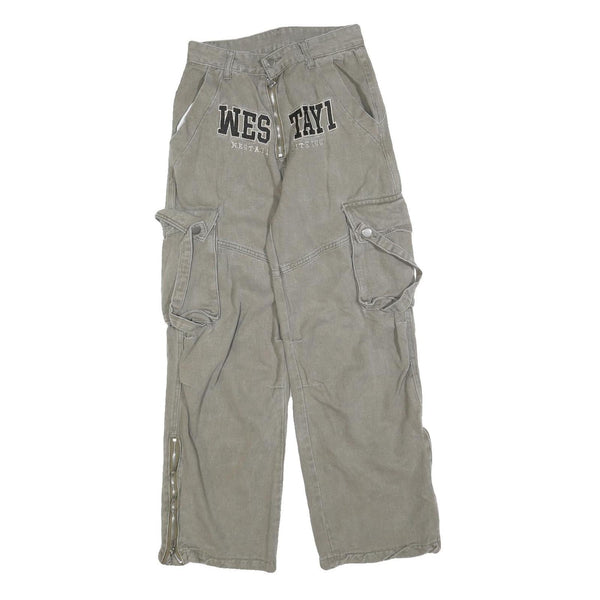 Womens Relaxed Cargo Cotton Blend Grey Trousers W26 L28 Casual Utility Zip