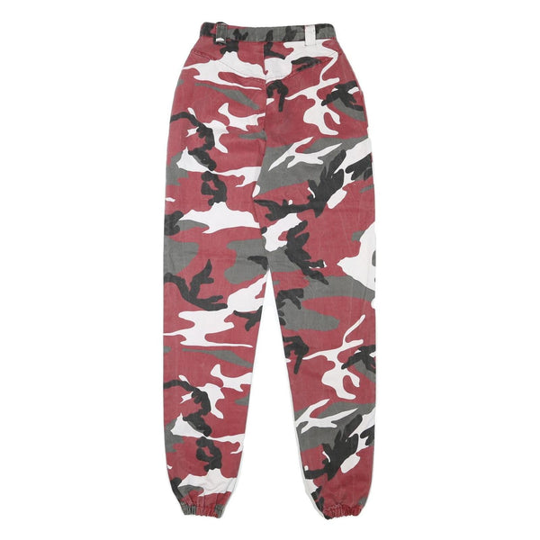 Womens Relaxed Fit Red Black & Grey Camouflage Cotton Blend Trousers W24 L32 Zip