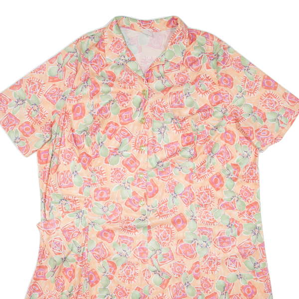 Womens Shirt Dress Orange Viscose Floral Short Sleeve Midi 2XL