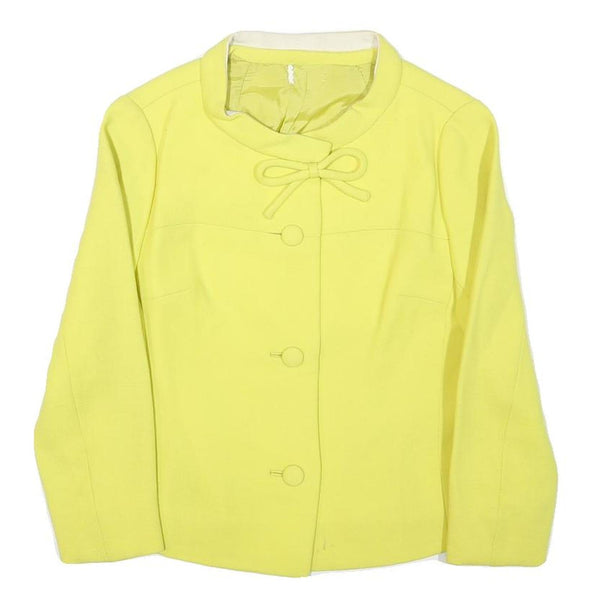 Womens Yellow Wool Blend Button Jacket XS Plain Classic Fit Bow Detail