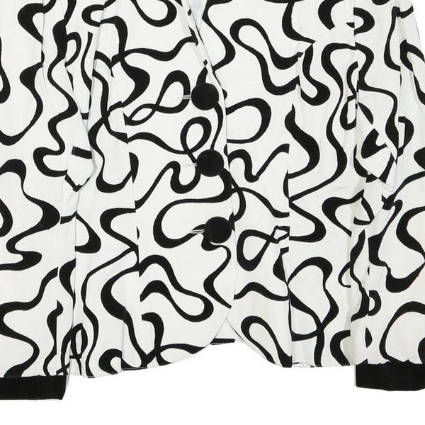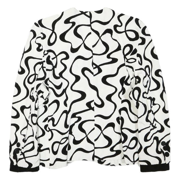 WOMENSTYL Womens White & Black Abstract Pattern Button Cotton Blend Jacket M