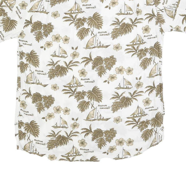 WORLD OF BASIC Mens White & Brown Hawaiian Cotton Blend Shirt L Casual Summer