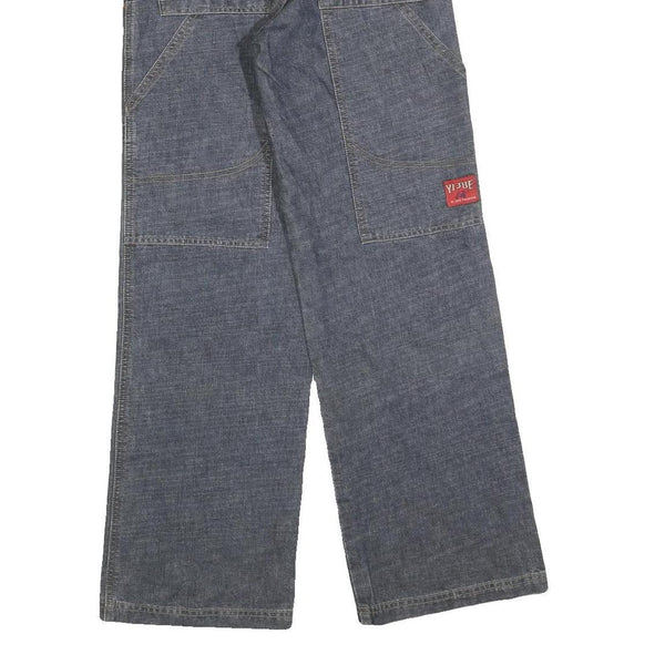 YI JUE Womens Jeans Blue Relaxed Straight Denim W24 L30 Wide Leg Pockets