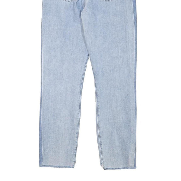 These Womens jeans by 7 FOR ALL MANKIND feature a striking light blue colour with a two-tone rinse effect, combining lighter central panels and darker outer side panels. They have a classic five-pocket design with visible copper rivets and a zip closure at the front.