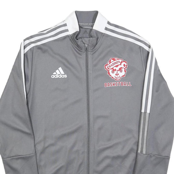ADIDAS Mens Grey Basketball Track Jacket S Polyester Blend Zip Casual Sportswear
