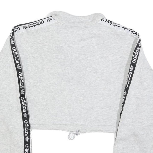 ADIDAS Womens Grey & Black Cropped Half Zip Sweatshirt UK 6 Logo Tape