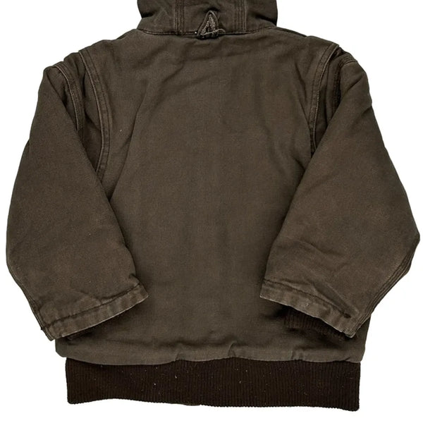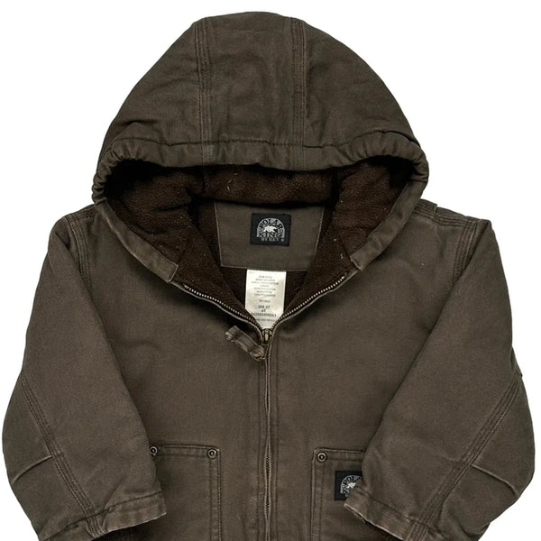 Boys Brown Jacket With Hood, Minor Wear On Sleeves