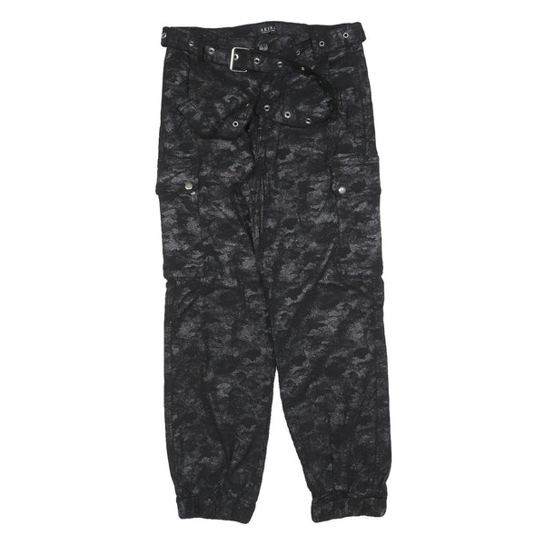 AKIRA Womens Black Cotton Blend Regular Cargo Trousers W30 L27 Belted Cuffed