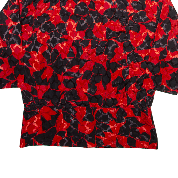Ancestral womens printed blouse red collared 3/4 sleeve silk crazy pattern m