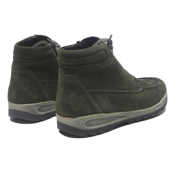 These ARA womens ankle boots are crafted from soft green suede, offering a stylish and comfortable addition to your footwear collection. The lace-up design and neat stitching details enhance their modern casual appeal, while the padded ankle collar provides extra support.