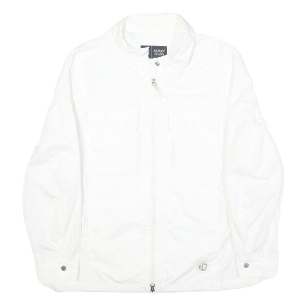 ARMANI JEANS Womens White Classic Jacket UK 8 Polyester Plain Zip Lightweight