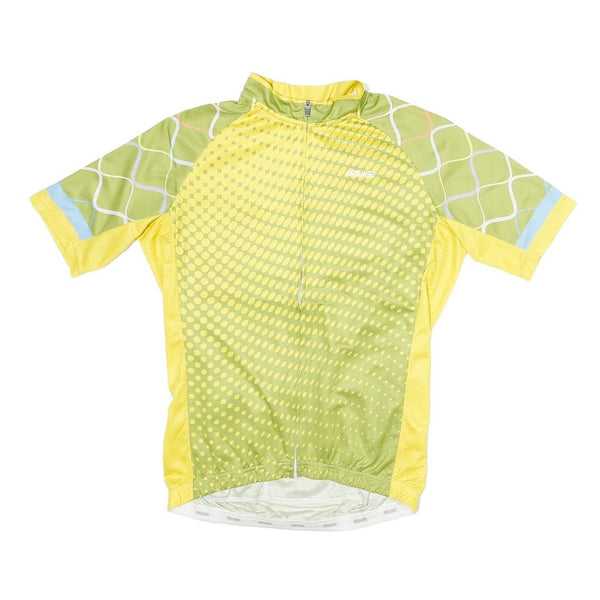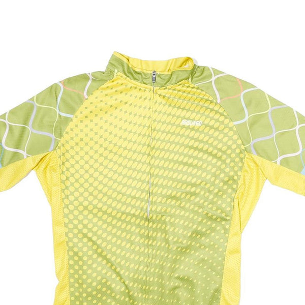ARSUXEO Mens Yellow & Green Cycling T-Shirt L Short Sleeve 1/4 Zip Print