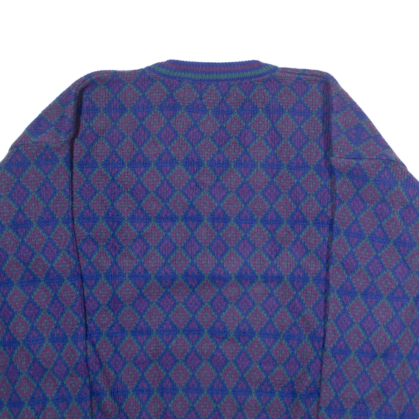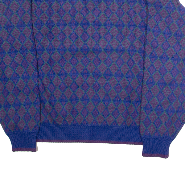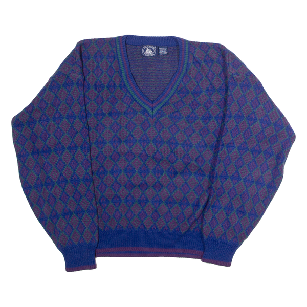 ATLANTIC TRADERS Mens Patterned Jumper Blue Diamond V-Neck 90s L
