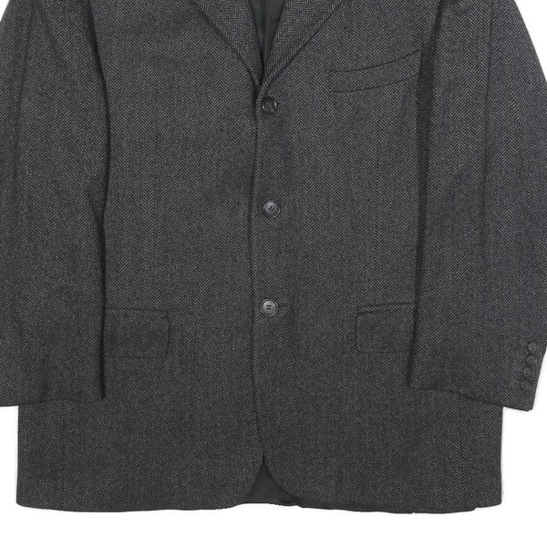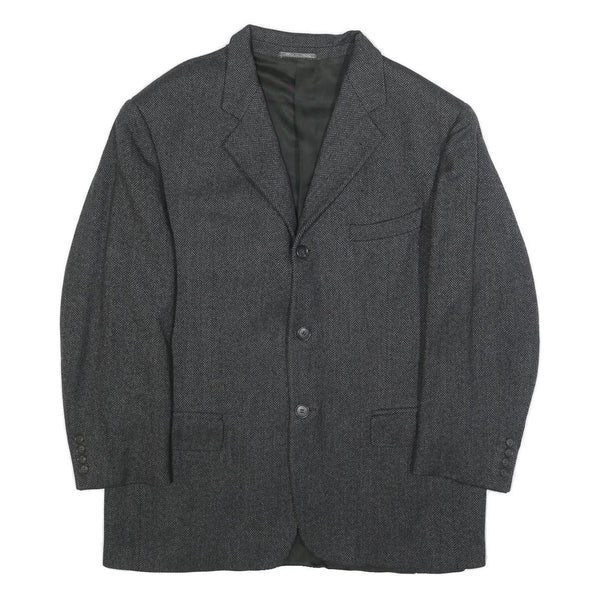 BALLY Mens Grey Herringbone Wool Blend Classic Jacket XL Button Formal Outerwear