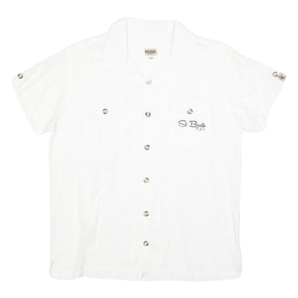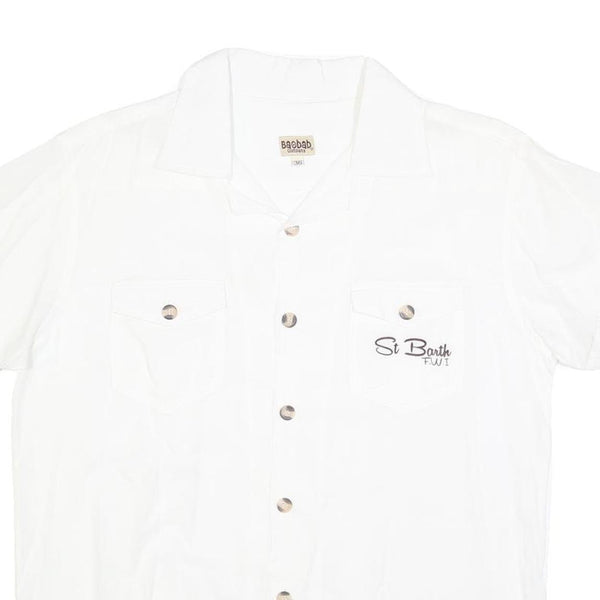 BAOBAB Mens White Cotton Shirt M St Barth Fiji Button Pocket Casual Summer