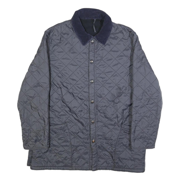 BARBOUR Mens Navy Blue Quilted Button Jacket XL Polyester Blend Classic