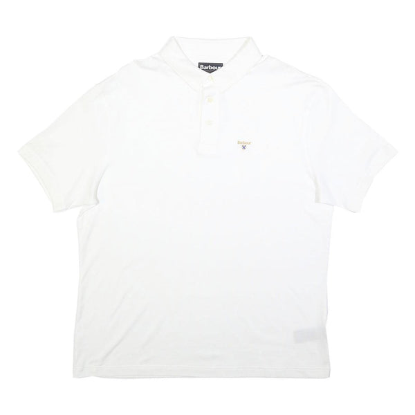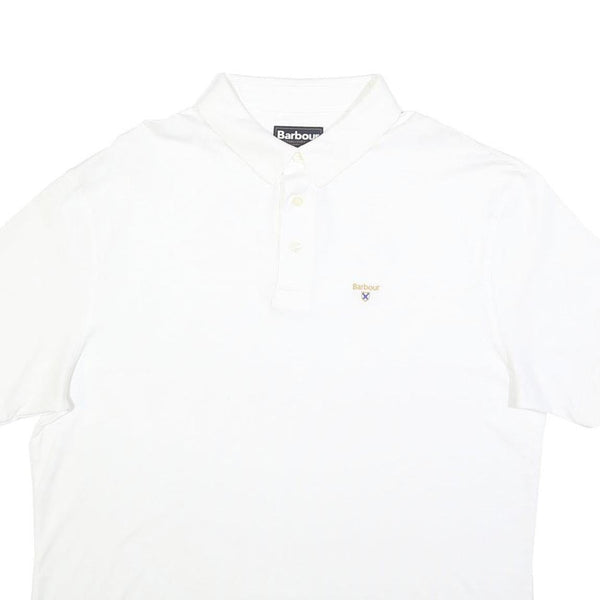 BARBOUR Mens White Short Sleeve Plain 2XL Polo Shirt Cotton Blend Classic Fit