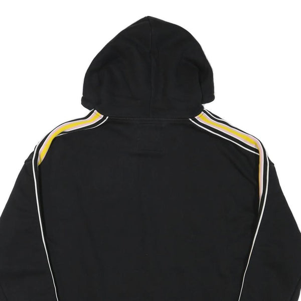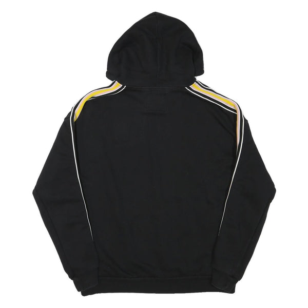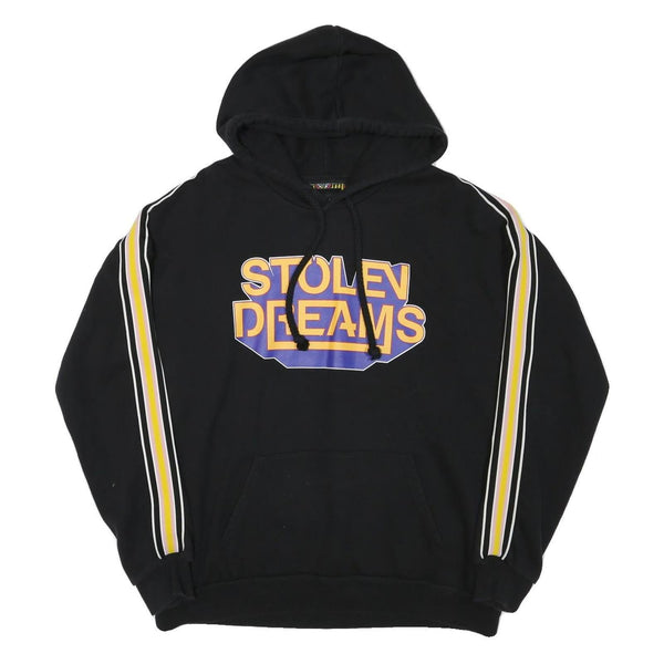 BERSHKA Mens Black Hoodie M Stolen Dreams Print Striped Sleeves Pullover