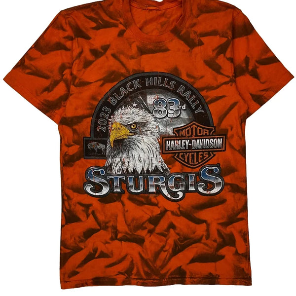 Black hills rally harley davidson graphic t-shirt - xs orange cotton