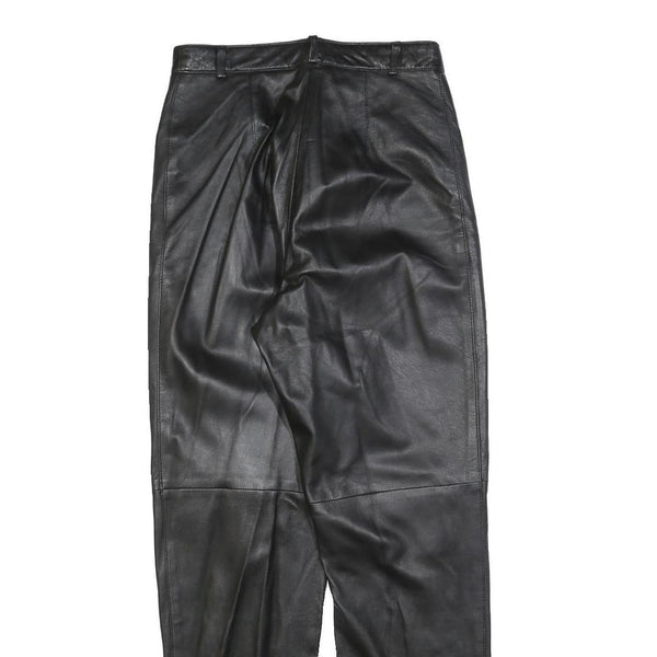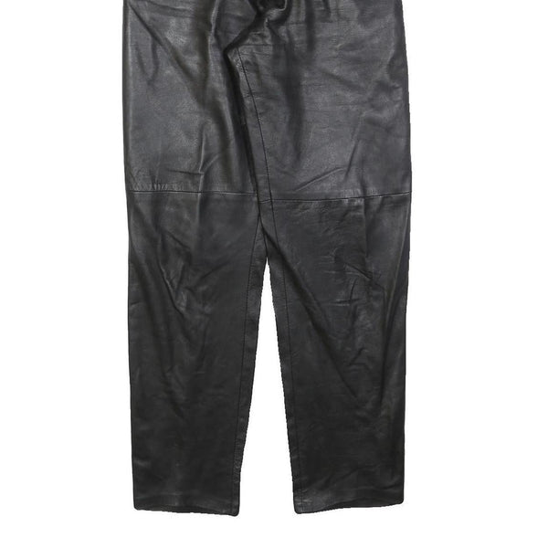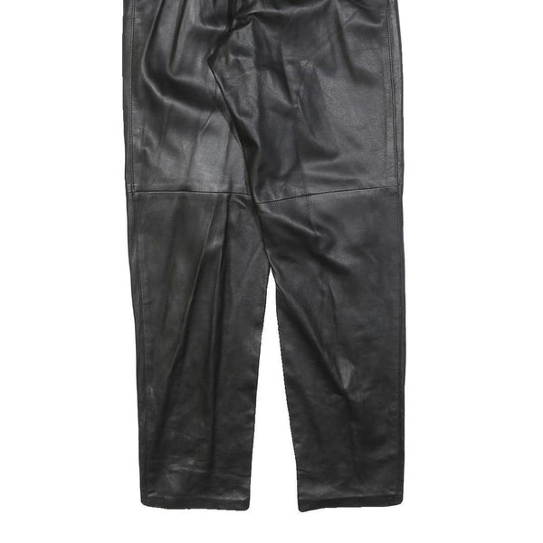 Black Womens Regular Fit Leather Trousers W26 L30 Zip Closure Stylish