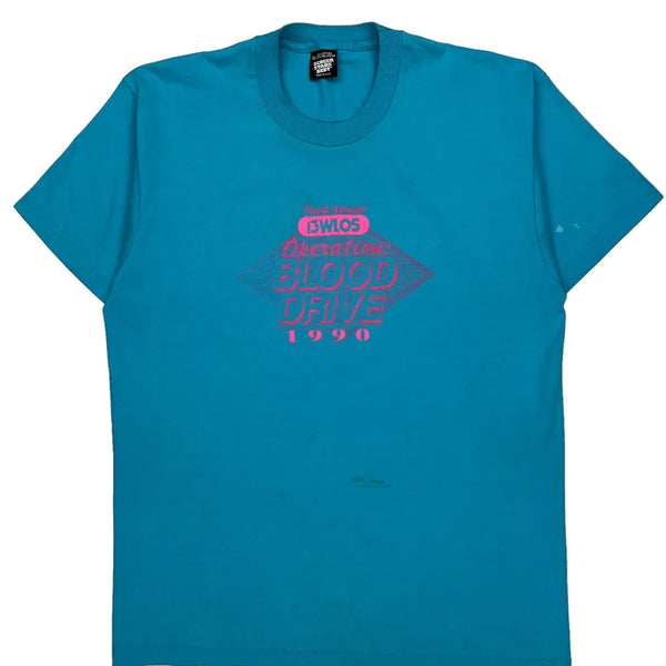 Single stitch blood drive 1990 screen stars graphic t-shirt - xl blue cotton blend