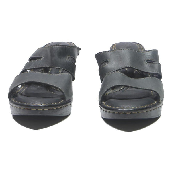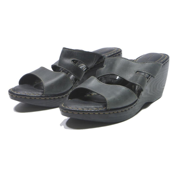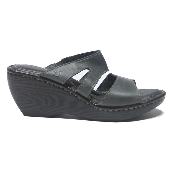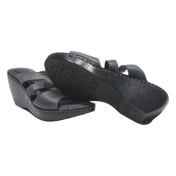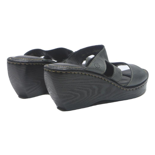BORN Womens Black Leather Wedge Sandals UK 9 Comfortable Slip-On Open Toe