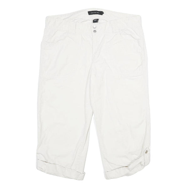 CALVIN KLEIN JEANS Womens Cotton White Regular Capri Trousers W36 L23 Casual