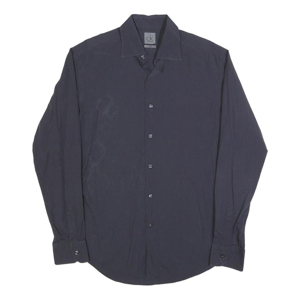 CALVIN KLEIN Mens Black Pinstripe Shirt L Button Closure Long Sleeve Elegant Fit