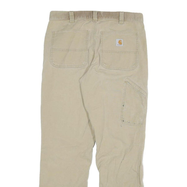 Carhartt mens cotton blend beige relaxed straight trousers w32 l31 workwear zip