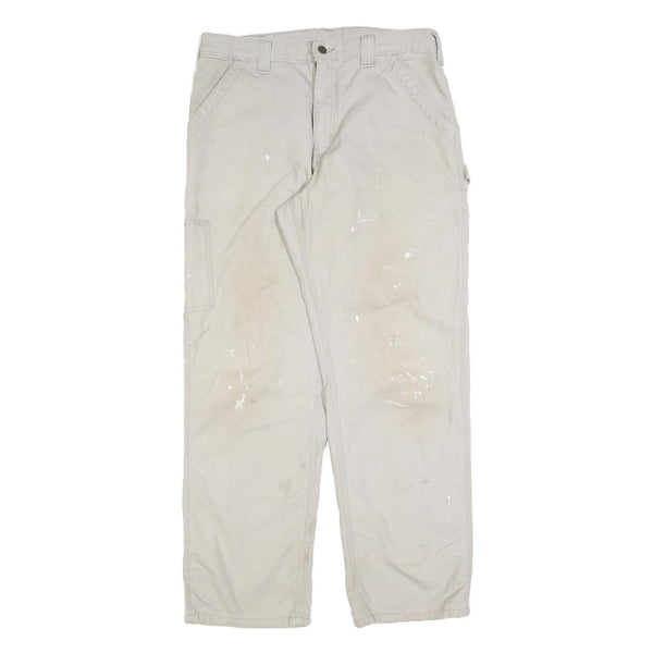 CARHARTT Mens Cotton Blend Beige Relaxed Straight Trousers W34 L32 Workwear