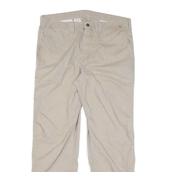 CARHARTT Mens Cotton Blend Beige Relaxed Straight Trousers W40 L34 Casual