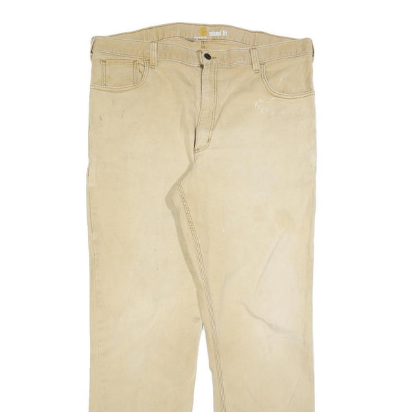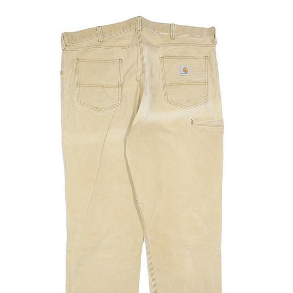 Carhartt mens cotton blend beige relaxed trousers w40 l32 workwear durable zip