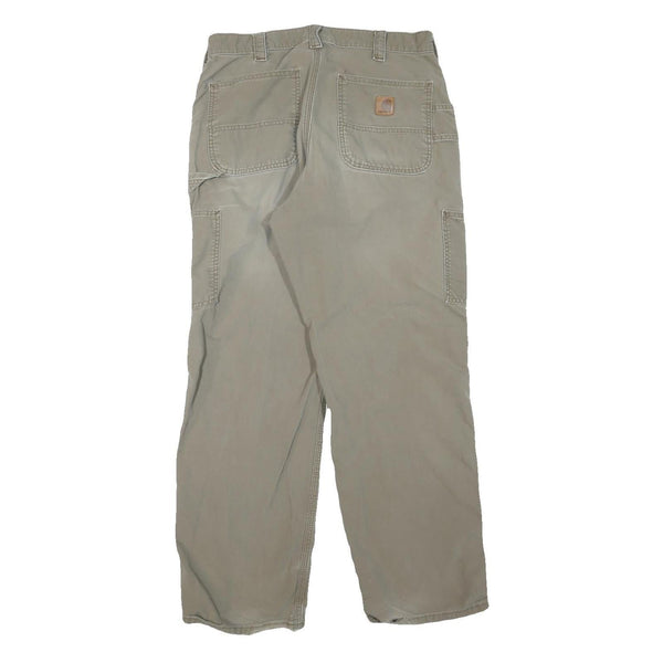 CARHARTT Mens Regular Beige Cotton Blend Trousers W34 L32 Workwear Zip Closure