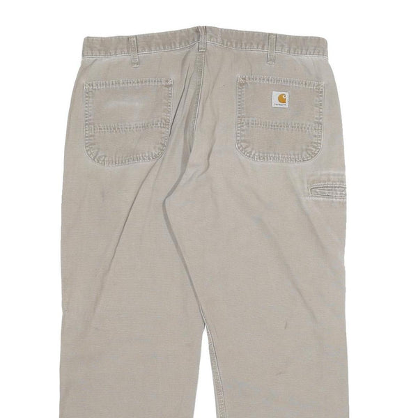 CARHARTT Mens Regular Beige Cotton Blend Trousers W36 L28 Workwear Zip Closure