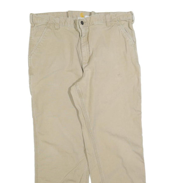 Carhartt mens relaxed beige cotton blend zip trousers w34 l30 casual workwear