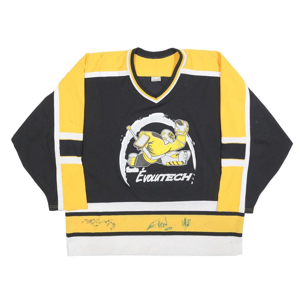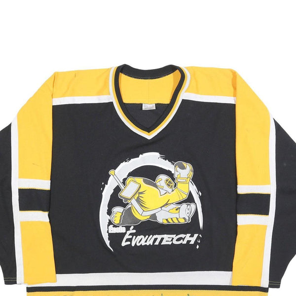 CCM Mens Black & Yellow École Evolutech Graphic T-Shirt XL Long Sleeve V-Neck