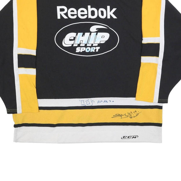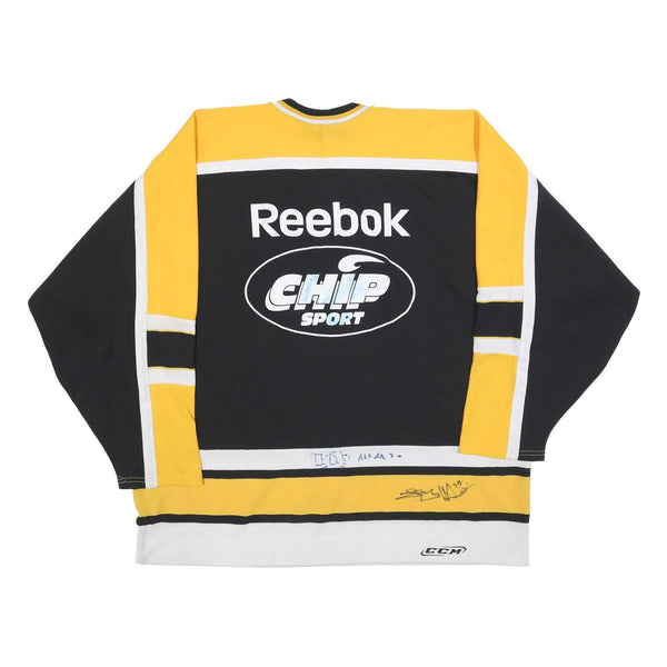Ideal for supporters of sporty designs, this shirt also includes Reebok and Chip Sport logos printed on the reverse, enhancing its unique appeal. Note: pen marks and signatures on the lower front and back add character but may affect condition.
