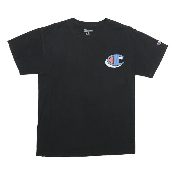 CHAMPION Mens Black Graphic T-Shirt M Short Sleeve Crew Neck Cotton Logo