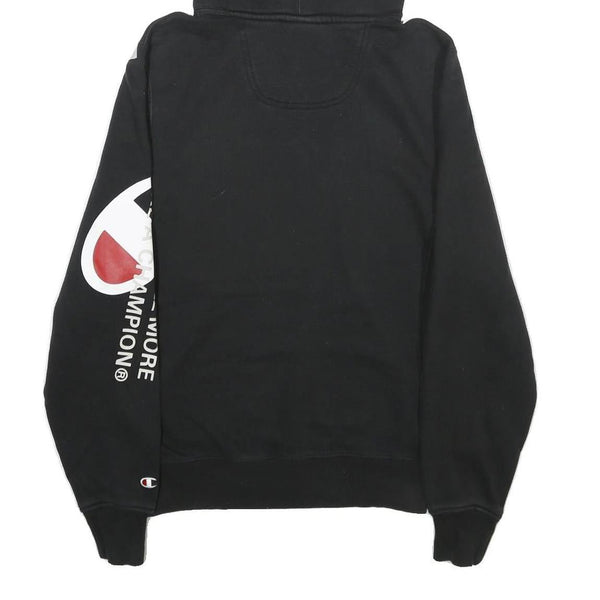 CHAMPION Mens Black Hoodie S Cotton Blend Pullover Logo Print Drawstring Hood
