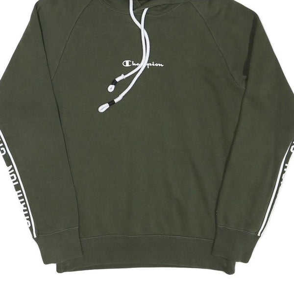 CHAMPION Mens Green Hoodie S Champion Sleeve Tape Pullover Cotton Blend