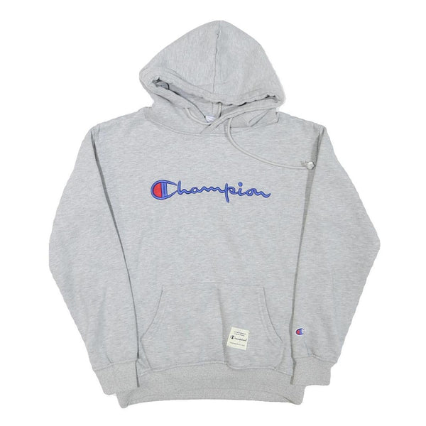 CHAMPION Mens Grey Hoodie S Embroidered Logo Cotton Blend Pullover