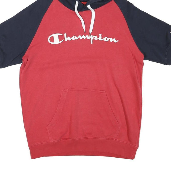 CHAMPION Mens Red & Navy Short Sleeve Hoodie M Cotton Blend Casual Pullover