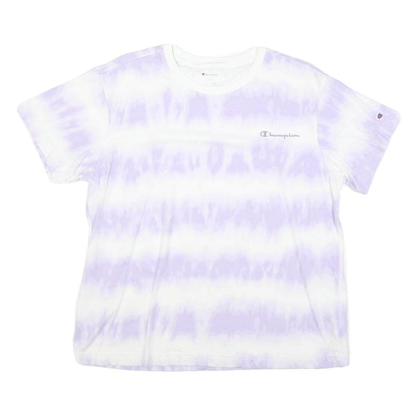 CHAMPION Mens White & Lilac Tie Dye T-Shirt L Short Sleeve Crew Neck Cotton