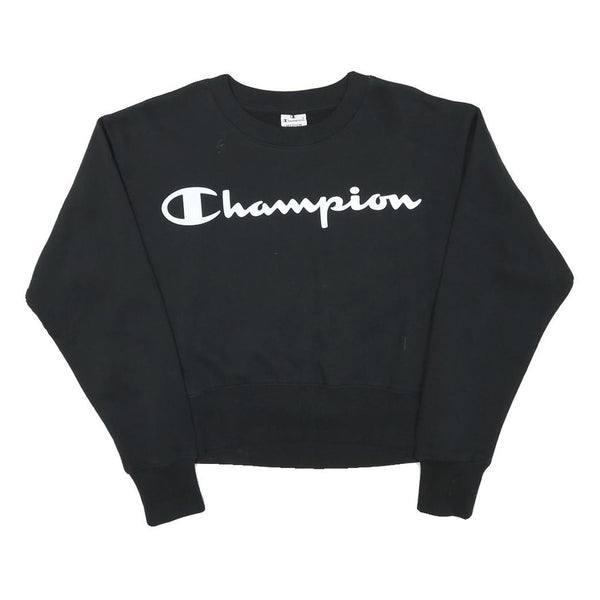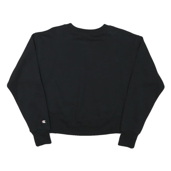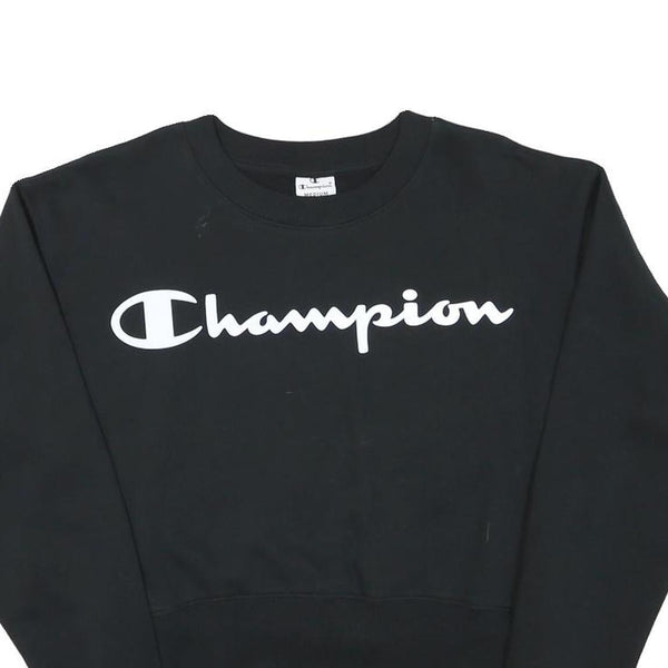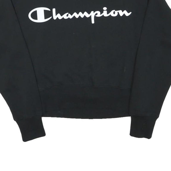 CHAMPION Womens Black Crew Neck M Cotton Blend Sweatshirt Logo Pullover