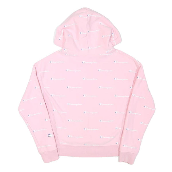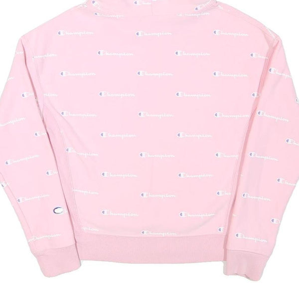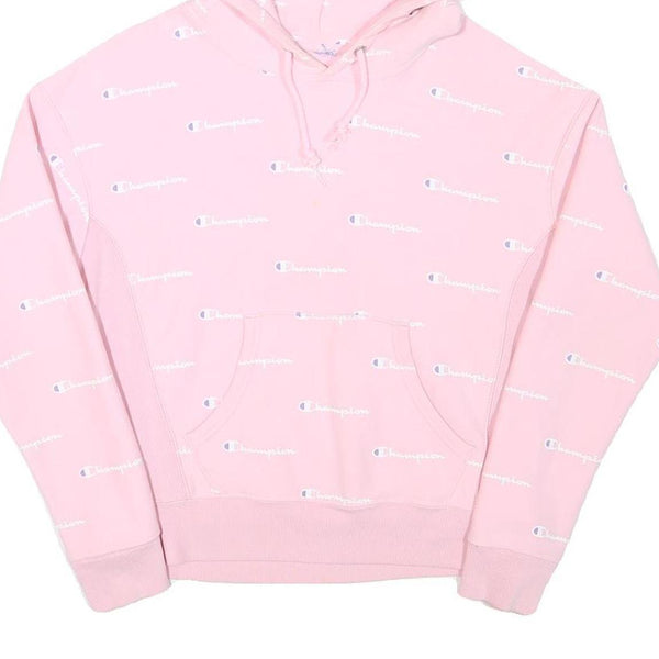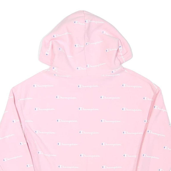 CHAMPION Womens Pink Cotton Blend All Over Logo Pullover Hoodie M