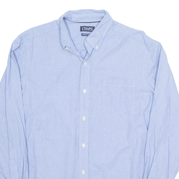 CHAPS Iconic Poplin Mens Shirt Blue Houndstooth Long Sleeve L