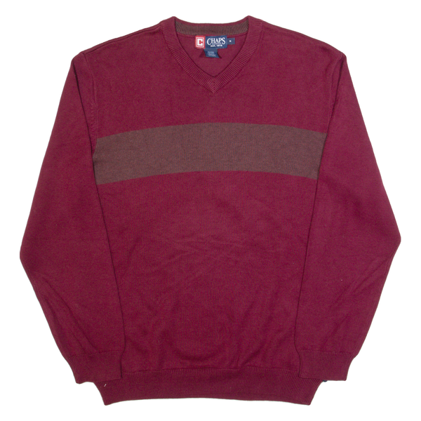 CHAPS Mens Jumper Maroon V-Neck Tight Knit M