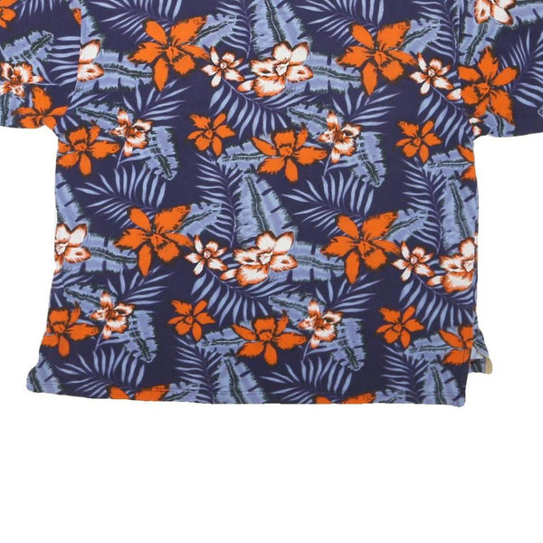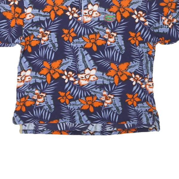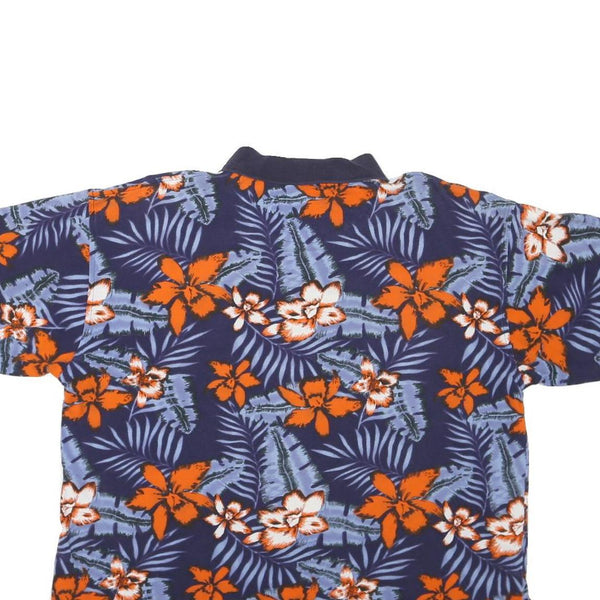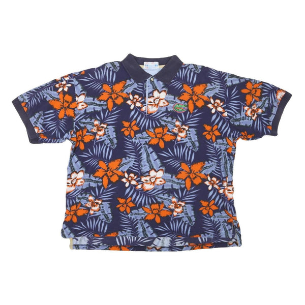 COLLEGE CLASSICS Mens Blue & Orange Floral Short Sleeve Polo Shirt XL Cotton