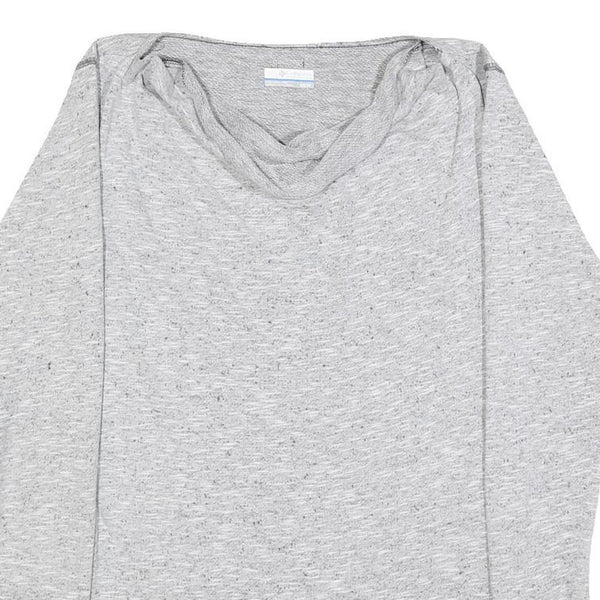 This women's jumper from Columbia features a light grey colour with a subtle heathered effect, giving it a versatile and neutral appearance. The fabric is a soft cotton blend that ensures comfortable wear and a relaxed fit, suitable for layering or standalone use.