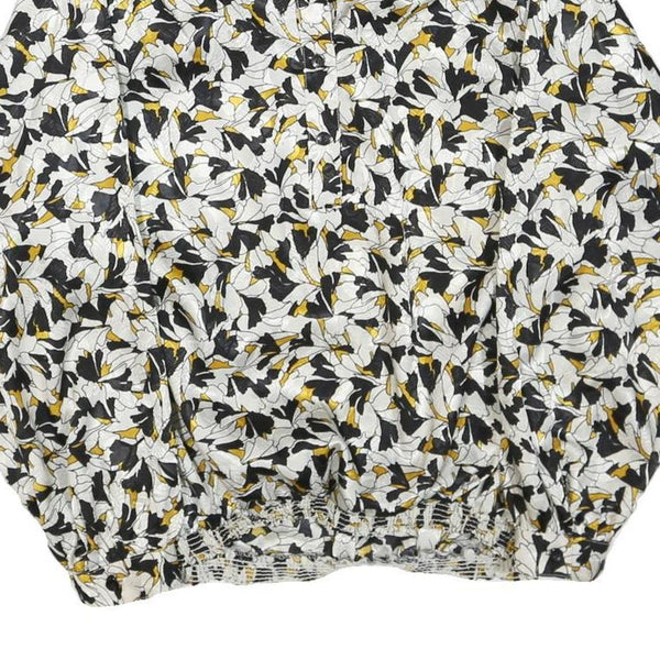DA-RUE OF CALIFORNIA Womens Black & White Floral Blouse Long Sleeve Collared L